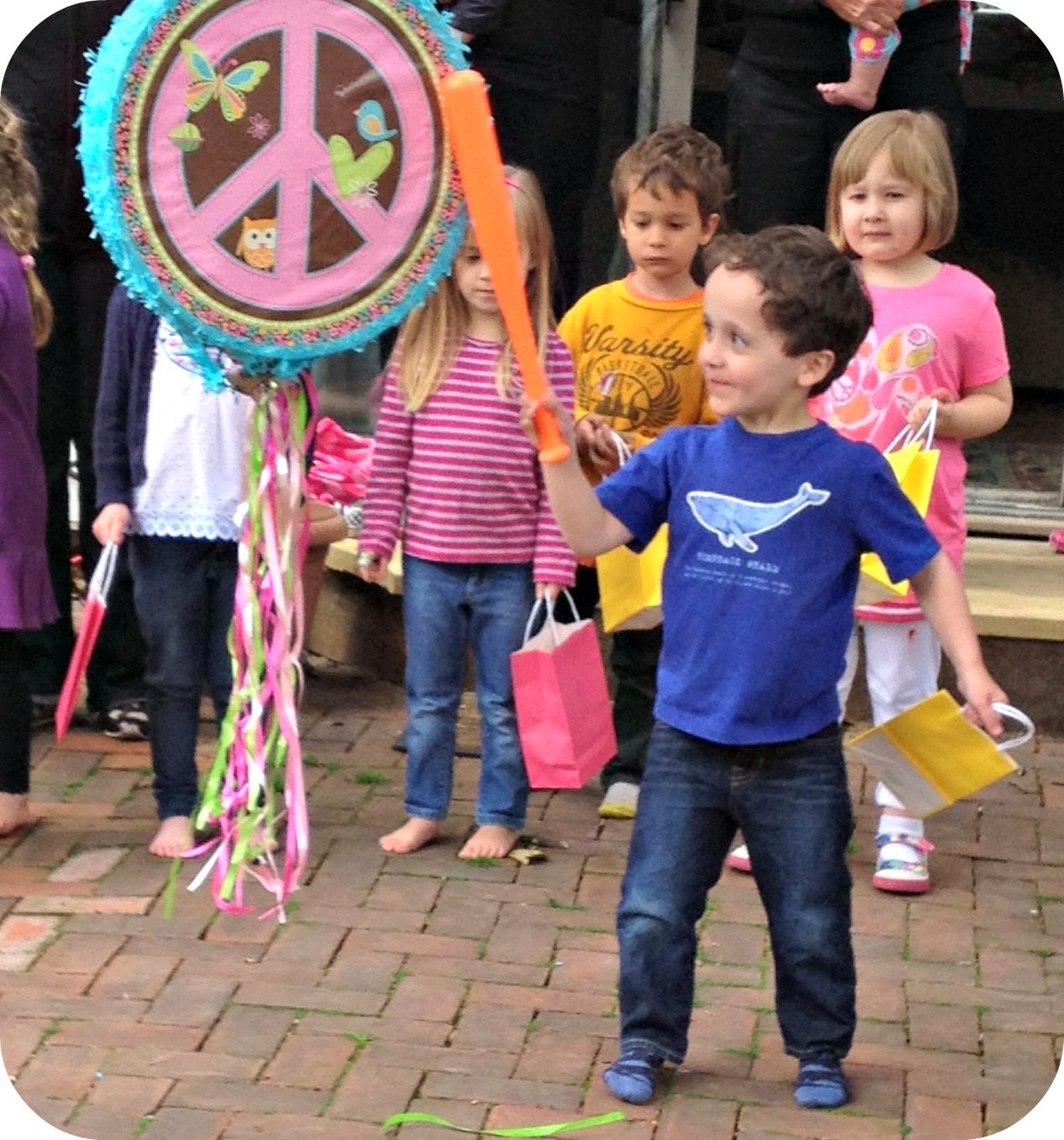 Hadley's dad was was brave enough to hold the pinata for the birthday party guests.