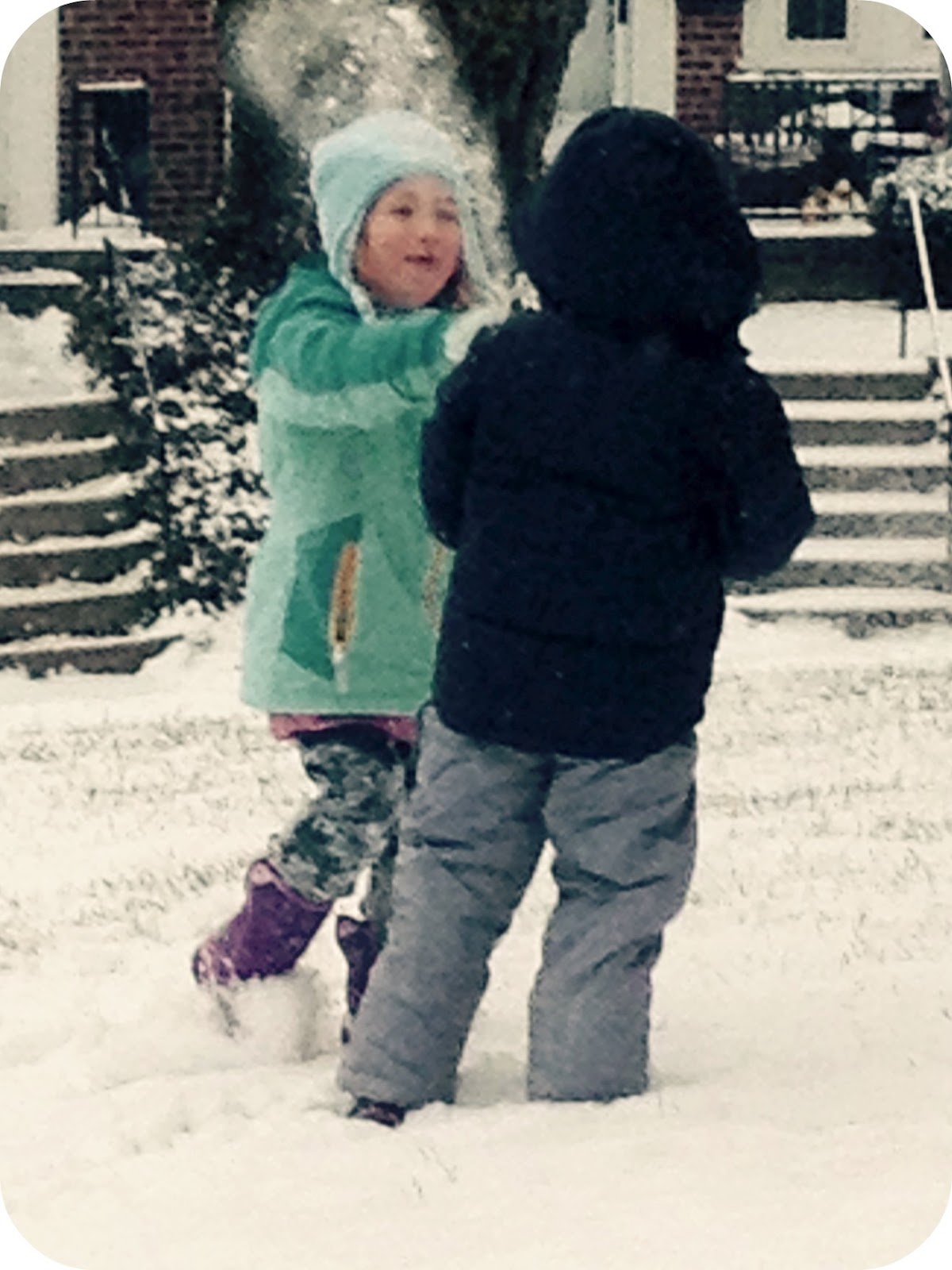 We decided to see if Mary Elizabeth was out. Just watching the boys walk in the snow was exciting. They had such a great time monitoring their path in the snow. We lucked out as she and her mom were both out.